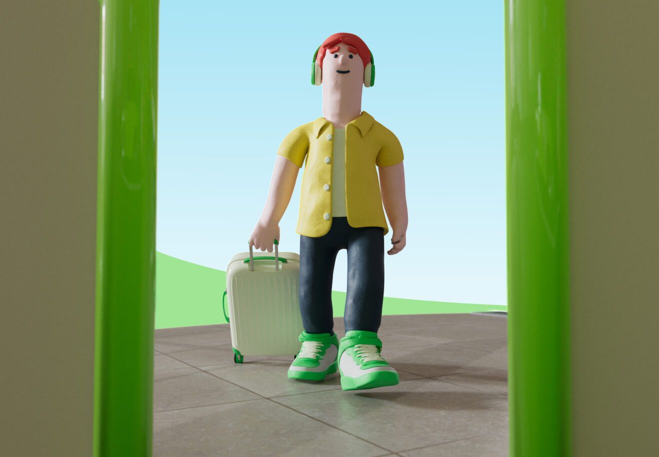 ¿Quién no ha estado alguna vez en un aeropuerto? Sabemos que es difícil detenerse a mirar publicidad cuando estás a punto de viajar. Por eso quisimos captar la atención dotando al personaje de encanto y simplificando las formas de los elementos principales hasta convertirlos en algo tangible y maleable. Gracias a estos elementos sencillos, junto con la textura tipo plastilina, creamos un universo único y muy disfrutable.