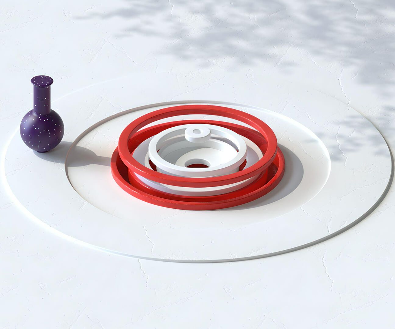 The circular shape is the leitmotiv that takes us through the scenes and ties the different narratives together. Visual cohesion and branding.